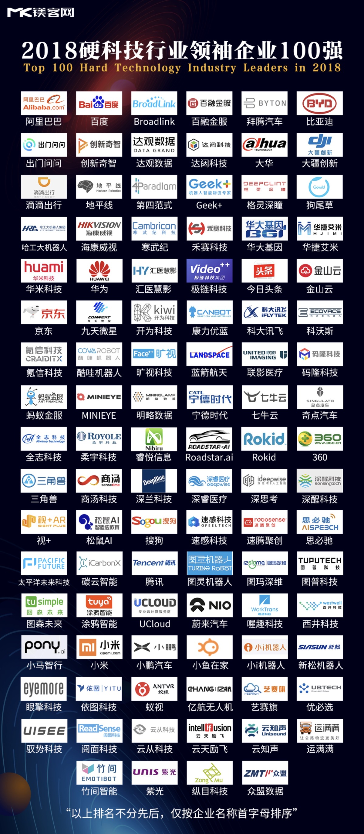 以下,是“2018硬科技領袖企業100強”榜單(排名不分先后):