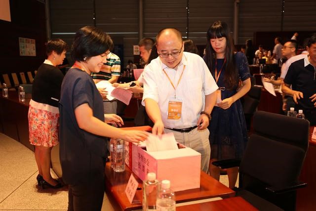 與會代表將選票投入票箱