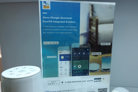 酷宅科技還推出了低成本的語音助手內置方案。對于一般的智能硬件來說,只要再增加5美金以內的硬件成本,即可搖身變成擁有“聽覺”的產品。酷宅科技的Alexa/Google Assistant/DuerOS內置硬件方案能夠讓傳統設備直接內置語音助手,就算沒有音箱的輔助也可以進行語音控制。