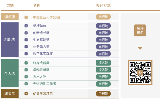 重點(diǎn)考察組織在戰(zhàn)略投資、系統(tǒng)儲(chǔ)備、培訓(xùn)運(yùn)營、學(xué)習(xí)設(shè)計(jì)、效果評估、績效改進(jìn)、品牌塑造、開拓創(chuàng)新、數(shù)字化運(yùn)營等方面的建樹,表彰典范,樹立標(biāo)桿。