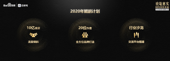 事實上,“在互聯(lián)網(wǎng)閱讀時代,讓用戶產(chǎn)生5分鐘以上的深度閱讀并不容易,這些內(nèi)容的價值也應(yīng)該被繼續(xù)放大,所以我們依然選擇把更多的流量傾斜向優(yōu)質(zhì)的深度內(nèi)容。” 郭倩倩表示,2020年,百家號將推出10億鯤鵬專屬流量扶持計劃,對優(yōu)質(zhì)泛科技類內(nèi)容進行流量傾斜;同時還將幫助優(yōu)秀的泛科技類內(nèi)容創(chuàng)作者打造個人IP,并匹配全方位的品牌包裝資源,讓“金子”內(nèi)容發(fā)光發(fā)亮。
