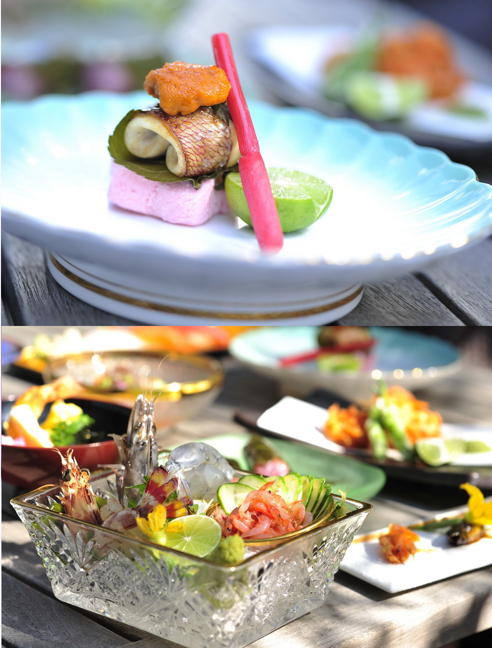 「和」日本料理特別搭配的櫻花料理套餐必定讓賓客一試難忘。櫻鯛云丹燒以鹽、木魚水、淡口醬油及清酒調(diào)成醬汁,重復(fù)把醬汁澆在海膽上。海膽的鮮美配合陣陣的清酒香氣,香腴鮮美。還有時(shí)令的櫻鯛薄切、天使蝦、活竹蝦、櫻花蝦刺身,同樣甘甜味美。