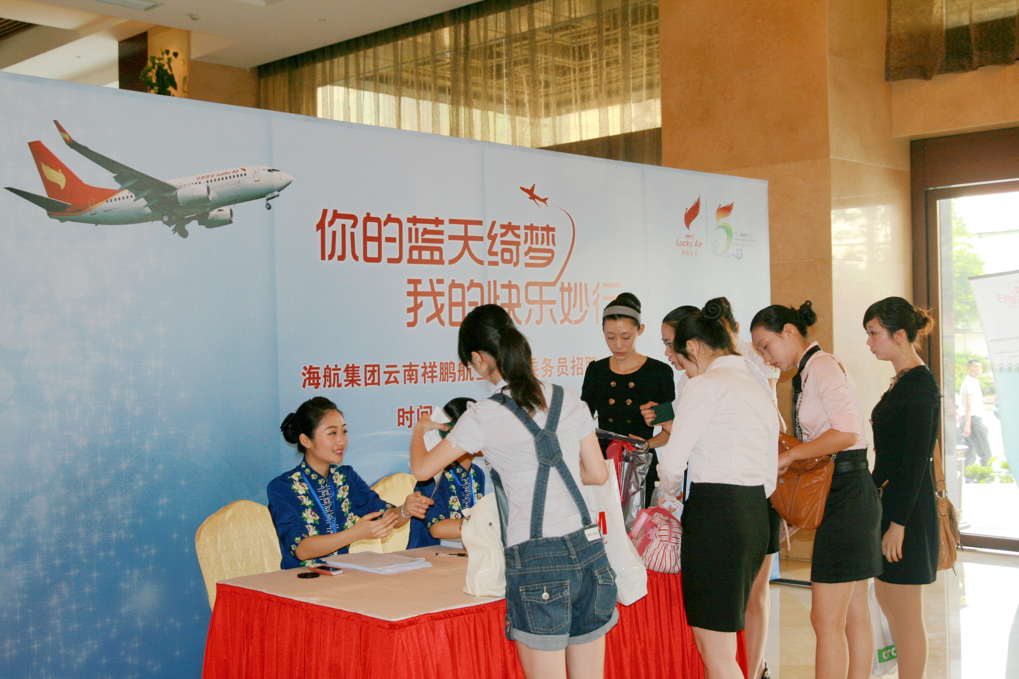 本次招聘,是海航集團成員公司祥鵬航空為即將開通的國際航線打造高素質精品客艙服務團隊的蓄力之旅。因此,豐富的文化知識和流暢的外語表達能力將做為應聘的一項重要標準。作為海航集團旗下一員的祥鵬航空,目前已經建立了以昆明為中心,覆蓋主要省會城市和省內重點城市的航線網絡,航線總數28條,通航省區21個,通航城市31個。截至今年2月,祥鵬航空共有14架客機投入運營(其中10架波音737-700型飛機,4架空中客車 A319型飛機)。五年期間,祥鵬航空在不斷增加運力,拓展航線的同時,更注重服務品質的提升,先后聯合云南各地州政府推出獨具云南民族特色的“每月一州”文化客艙活動,在為旅客營造簡單、輕松出行體驗的同時,更為立足云南,服務云南奠定了基石。
