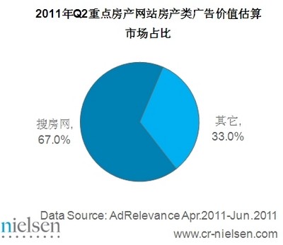 搜房網(wǎng)2011年 Q3房產(chǎn)類廣告價值估算高達2.79億元,占行業(yè)整體的62.5%,遠超其他競爭對手。