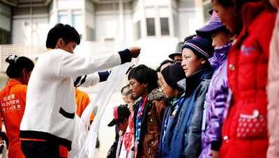 遠大心胸醫院藏語翻譯志愿者為西藏小朋友獻哈達