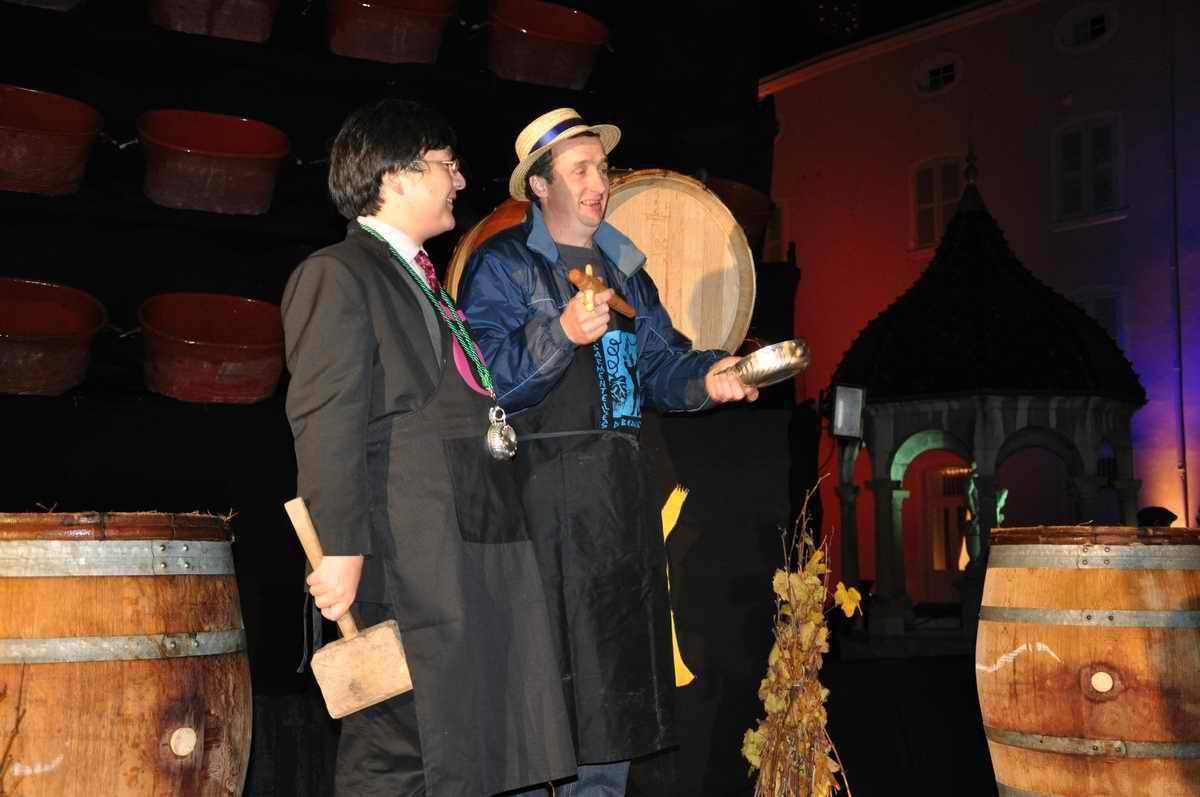 而當零點鐘聲敲響的時刻,法國薄若萊2011的新酒的第一個酒桶亦是由劉君以傳統的儀式鑿開,成為了全法國第一位喝到薄若萊新酒的人,更是第一位在薄若萊市政廳門口敲開薄若萊新酒酒桶的中國人。顯示了法國官方對也買酒在推廣薄若萊新酒文化方面的認可,以表彰也買酒幫助薄若萊新酒拓展中國市場的卓越貢獻。