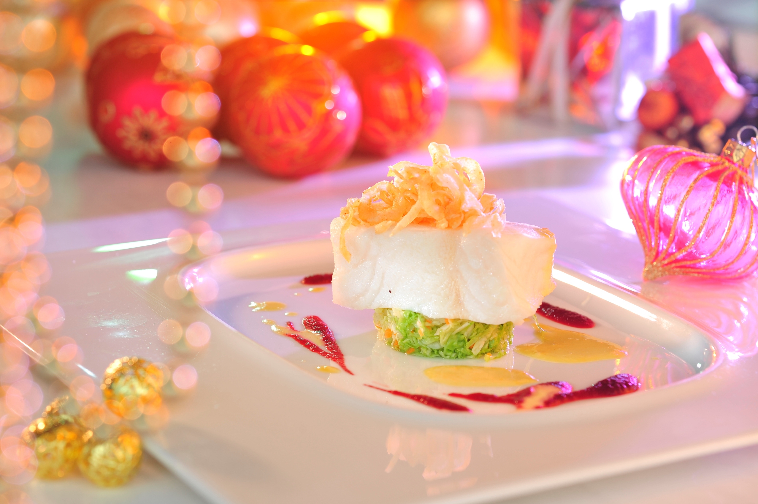 Le 188°12月25日菜式:法式鵝肝醬配榛子、蘋果果醬及濃縮意大利黑醋汁、香脆帶子配田園沙律及三文魚籽、香滑茴香忌廉湯配香炸小龍蝦及龍蝦牛油、青蘋果雪葩、低溫煮法國(guó)多寶魚配白椰菜、紅菜頭茸及藏紅花忌廉汁或烤澳洲羊鞍配時(shí)令蔬菜及鳀魚汁、核桃芭菲杏仁千層酥配朱古力及金巴利、咖啡或茶,港幣1,088元每位。