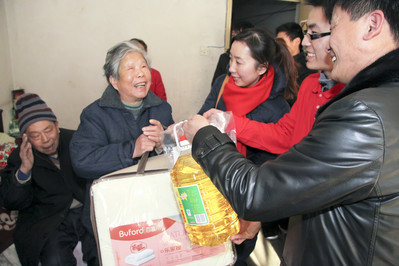 在沃爾瑪“社區(qū)暖洋洋”啟動活動上,社區(qū)居委會和熱心公益的好鄰居,以及沃爾瑪?shù)膯T工志愿者一起為接受新年“大禮包”的社區(qū)鄰居制作了精美的愛心卡并簽上祝福語,或親手書寫了書法作品送給社區(qū)鄰居,或烘焙了香美可口的蛋糕,或送上溫馨的春聯(lián)。啟動活動之后,商場的沃爾瑪志愿者及當(dāng)?shù)厣鐓^(qū)居委會代表將一個個裝著大米、食油、地方特色年貨等的新春“大禮包”送到了這些社區(qū)最需要關(guān)愛的鄰居家中。員工志愿者還為這些家庭貼上春聯(lián)、打掃房間,讓這些需要幫助的社區(qū)鄰居過上一個豐實(shí)的春節(jié)。從1月5日到2月底,沃爾瑪全國各家商場還將陸續(xù)走訪網(wǎng)友和社區(qū)居委會舉薦的社區(qū)好人和需要救助的困難鄰居們,為他們送去新年的禮包。