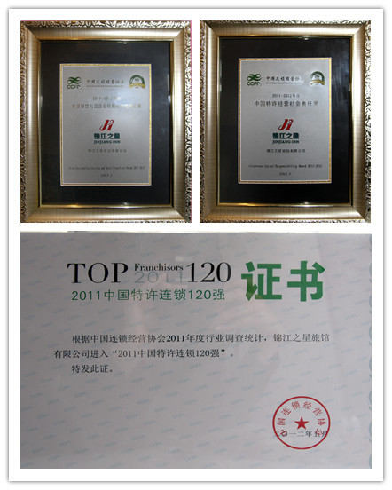 另外,根據中國連鎖經營協會2011年度行業調查統計,錦江之星旅館有限公司還被列入“2011中國特許連鎖120強”。錦江之星不懈地努力,為中國住宿業和特許加盟服務業的發展和創新、為在中國能有更多的人住上好品質的經濟型酒店做出新貢獻。