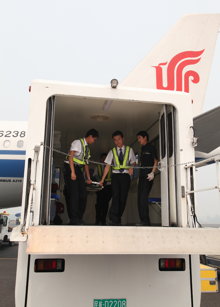 國航殘疾旅客升降平臺車將傷員送至地面