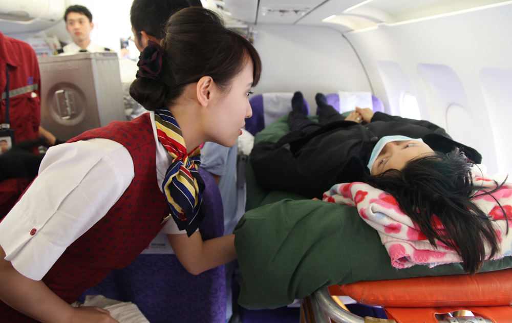國航西南分公司乘務組精心看護傷員