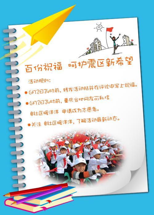 沃爾瑪公益微博@社區(qū)暖洋洋 為地震災(zāi)區(qū)孩子征集兒童節(jié)祝福,期待網(wǎng)友參與。