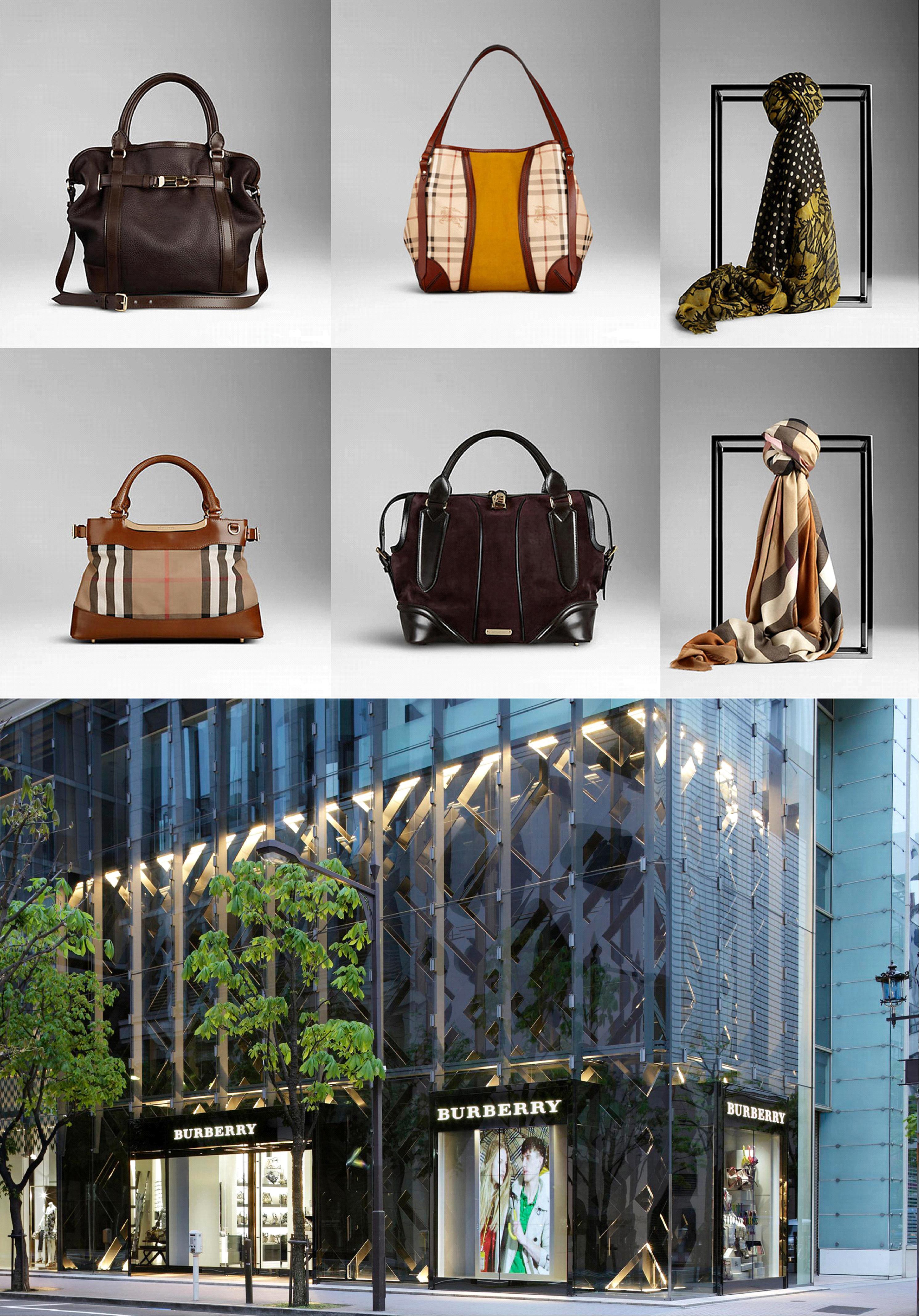 在這兩家巴寶莉旗艦店內,從巴寶莉經典雙排扣風衣到箱包、錢包、披肩等頸部裝飾品、香水、手表、眼鏡等,應有盡有。而進口商品在日本也很受歡迎,特別是具備前衛設計和優良品質的高人氣手提包系列,商品的種類及數量在日本可謂首屈一指。服飾方面,除了款式眾多的經典雙排扣風衣系列之外,還有不斷創新、能夠讓消費者感受到巴寶莉品牌新魅力的“BURBERRY PRORSUM”系列商品。
