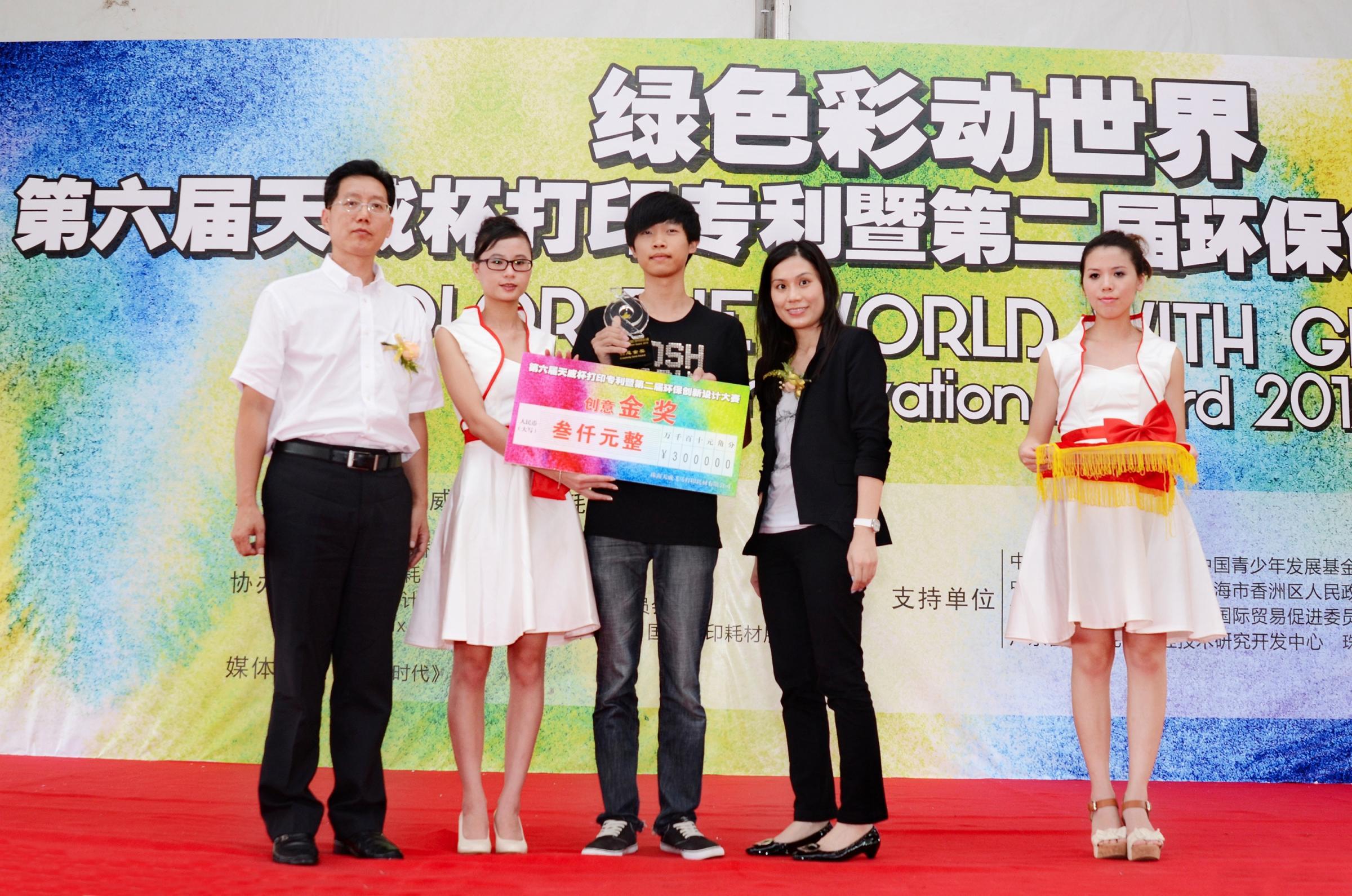 珠海2012年9月28日電 /美通社/ -- 9月24日,第六屆“天威杯”打印專利暨第二屆環(huán)保創(chuàng)新設(shè)計(jì)大賽頒獎(jiǎng)典禮在中國(珠海)國際打印耗材展覽會現(xiàn)場隆重舉行。大賽首度聯(lián)手中國青少年發(fā)展基金會,為參與“希望工程激勵(lì)行動(dòng)”公益項(xiàng)目的所有環(huán)保團(tuán)隊(duì)提供“創(chuàng)意獎(jiǎng)”參賽平臺,最終來自北京師范大學(xué)-香港浸會大學(xué)聯(lián)合國際學(xué)院“Green Action”小組的環(huán)保送禮項(xiàng)目,獲得創(chuàng)意金獎(jiǎng)。