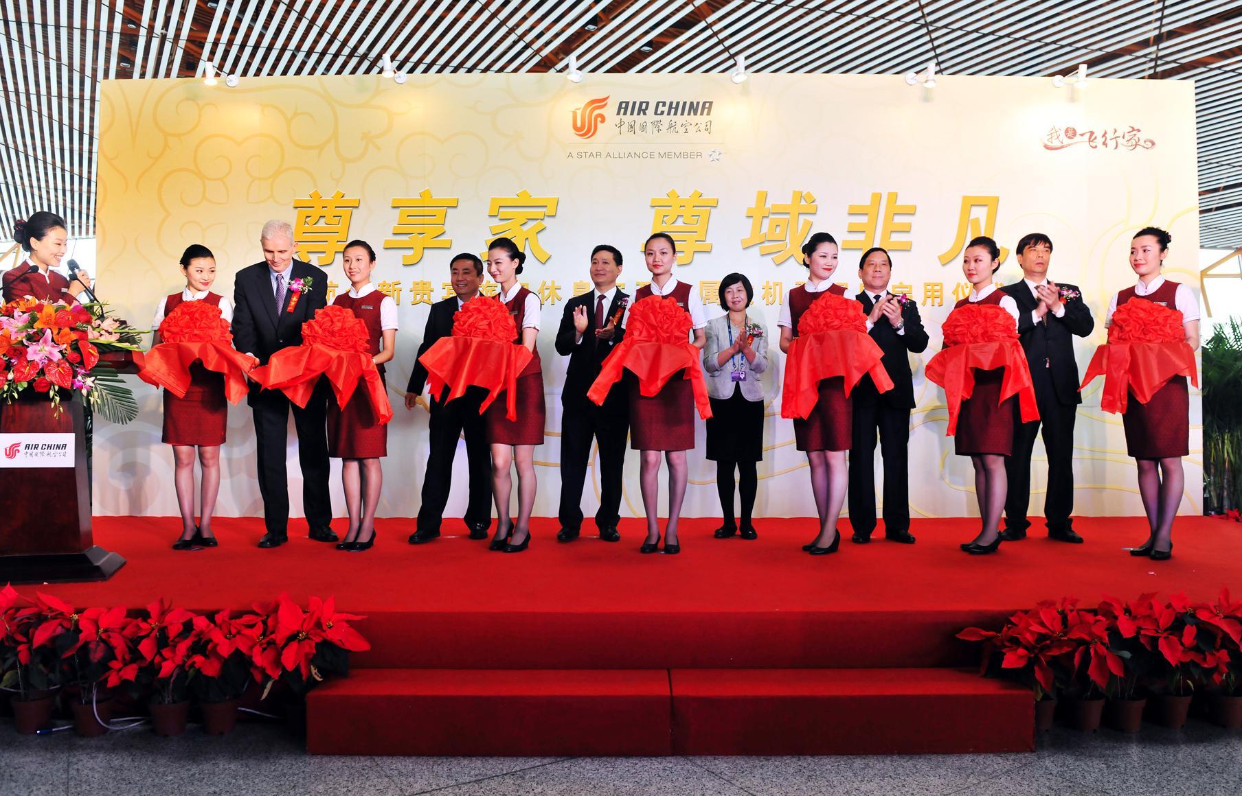 國(guó)航全新貴賓旅客休息室及專屬乘機(jī)登記區(qū)啟用儀式現(xiàn)場(chǎng)(王澤民攝)