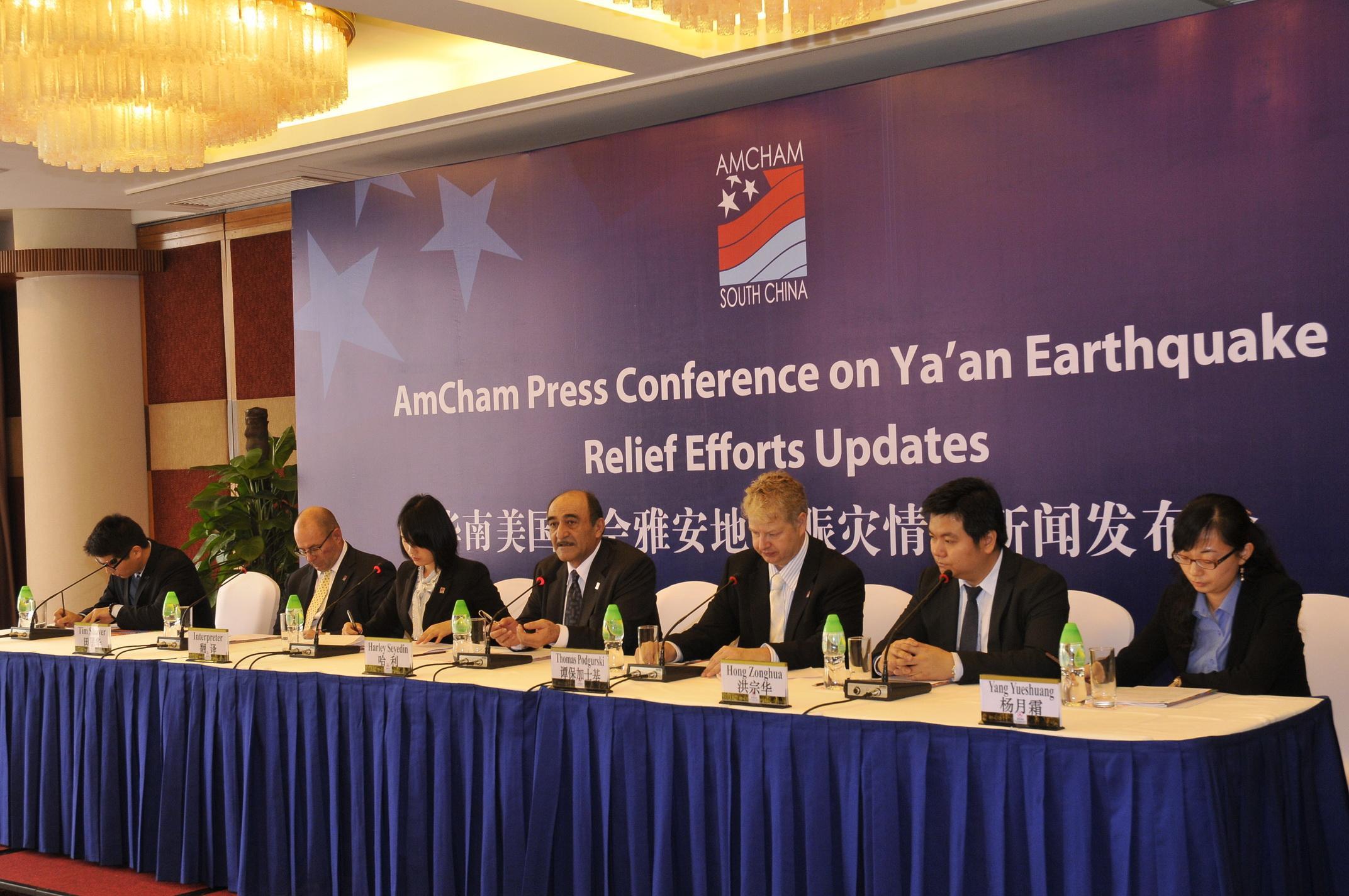 廣州2013年4月24日電 /美通社/ -- 今天(24日)上午,華南美國商會在廣州花園酒店舉行了雅安地震賑災情況新聞發布會,美商會哈利·賽亞丁會長及理事會成員、瑪氏-箭牌糖果(中國)有限公司代表、玖龍紙業(控股)有限公司代表、比亞迪股份有限公司代表出席了該發布會。以下是華南美國商會哈利會長致媒體的公開信。