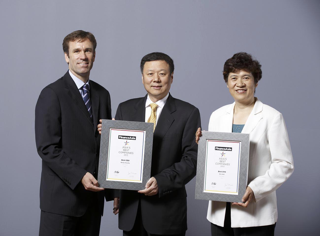中國(guó)電信股份有限公司在亞洲權(quán)威財(cái)經(jīng)雜志《金融亞洲》舉辦的第十三屆年度亞洲較佳公司評(píng)選中,連續(xù)三年獲機(jī)構(gòu)投資者及分析師評(píng)選為“亞洲較佳管理公司第一名”。