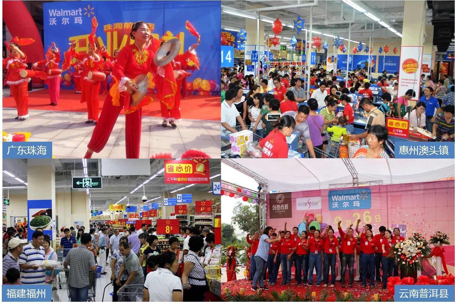 沃爾瑪在福建福州、廣東珠海、云南普洱縣、及惠州澳頭鎮(zhèn)的四家全新購(gòu)物廣場(chǎng)開業(yè)盛況