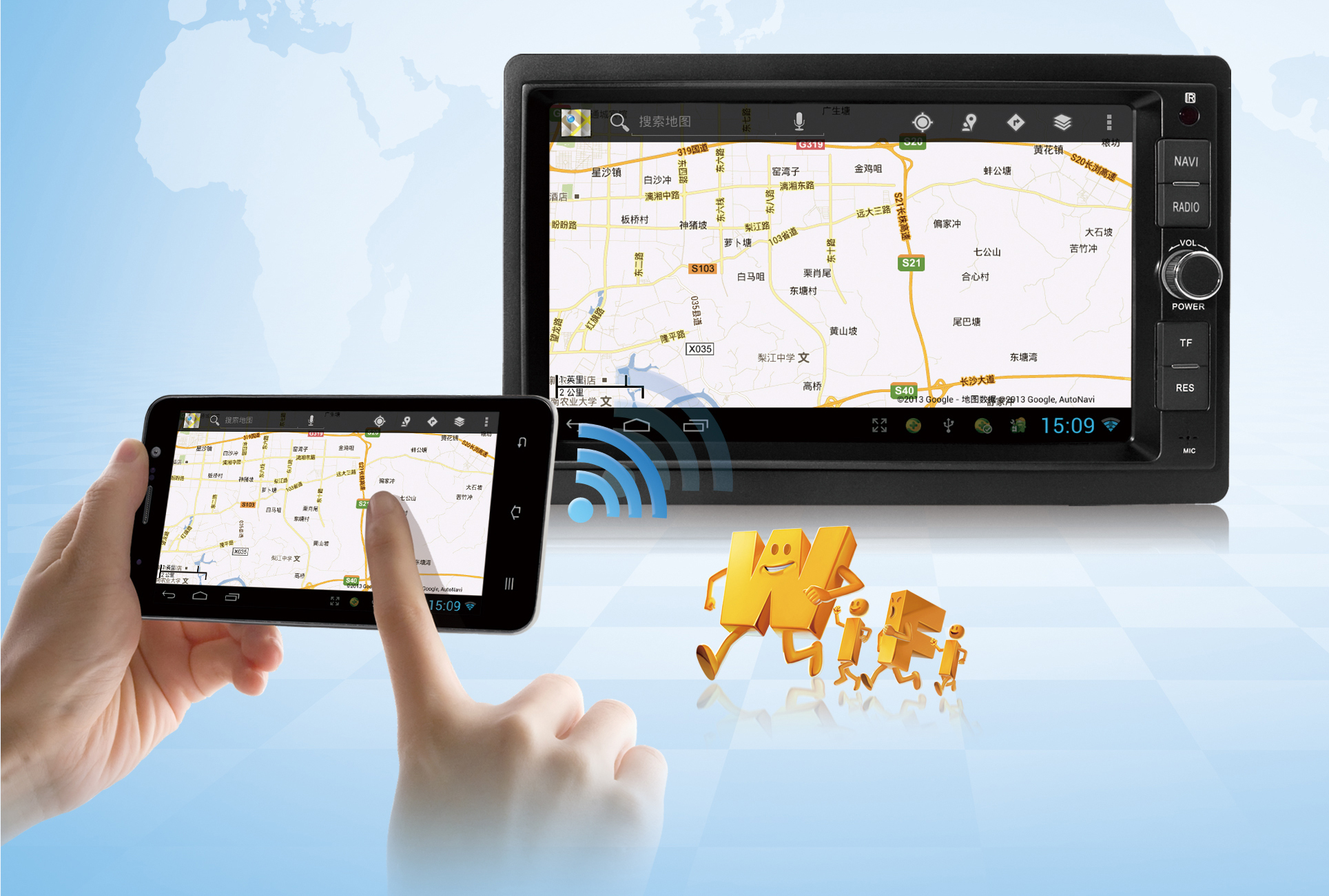 安卓4.2所具有的超多新功能給車Pad注入新活力:Miracast無線顯示共享功能,可以將手機的顯示內容無線投射到車Pad上面,車友可盡情在車Pad上瀏覽分享智能手機的照片、視頻、電影、游戲、導航等;新增便攜式熱點,為車Pad出行提供更多功能和娛樂性;鍵盤手勢輸入,單手打字變得超級簡單;屏幕保護程序,讓屏保更加豐富多彩。