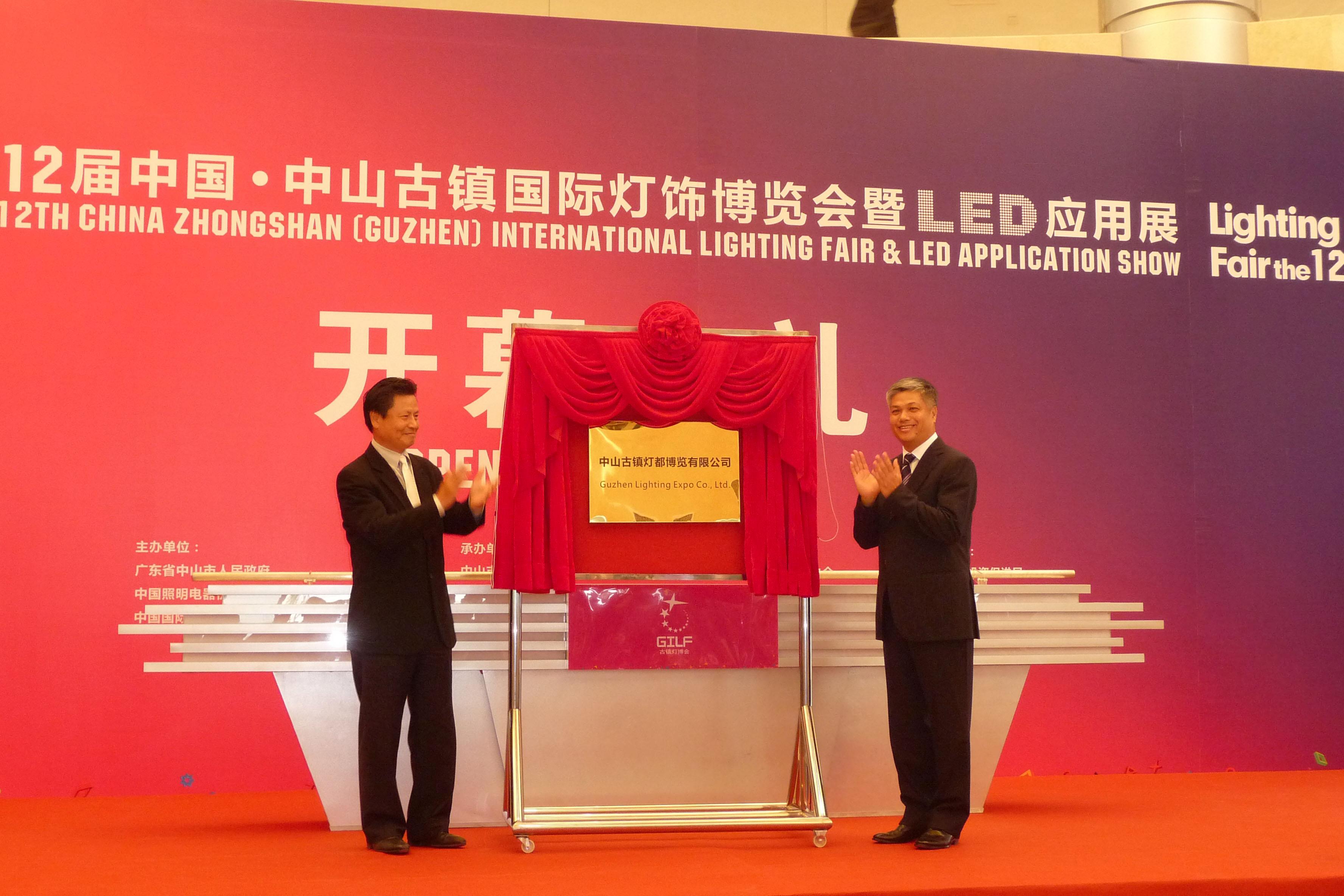 中山古鎮2013年10月18日電 /美通社/ -- 上海博華國際展覽有限公司(簡稱上海博華)和廣東中山市古鎮鎮人民政府成立一家新的合資公司,以會展業推動古鎮燈飾產業的長遠發展為宗旨,對古鎮燈博會進行專業化的經營管理,力爭把該展會打造成100萬平方米的行業大展。新合資公司成立暨揭牌儀式于10月18日在第12屆中國-古鎮國際燈飾博覽會暨LED應用展的開幕式上舉行。古鎮鎮鎮長魏宏銳和上海博華創始人及董事王明亮先生代表合作雙方為合資公司-中山古鎮燈都博覽有限公司揭牌。