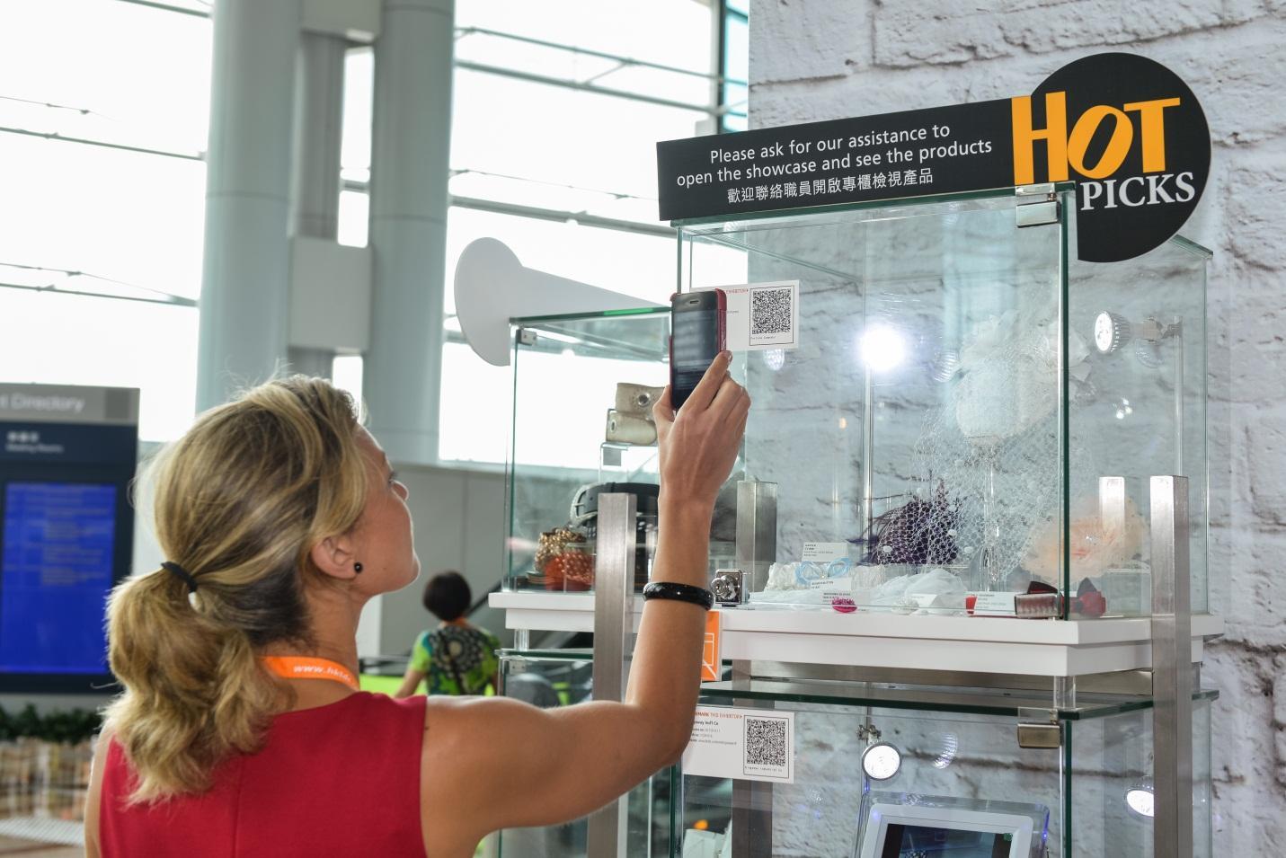 買家于《小批量采購專區》掃描展柜上的專屬二維碼(QR Code),便可即時下載供應商和相關產品信息。