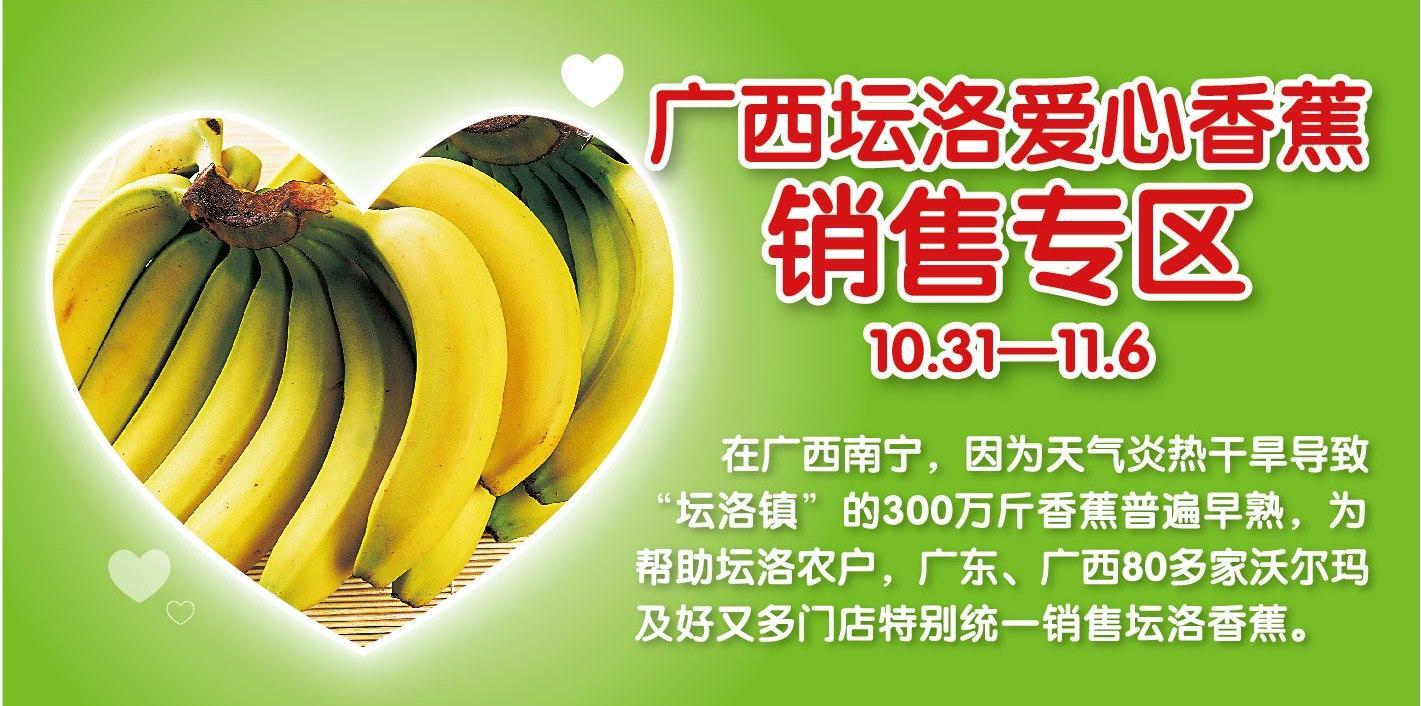廣東、廣西80多家沃爾瑪門店正銷售廣西壇洛由于早熟而引起的滯銷香蕉。