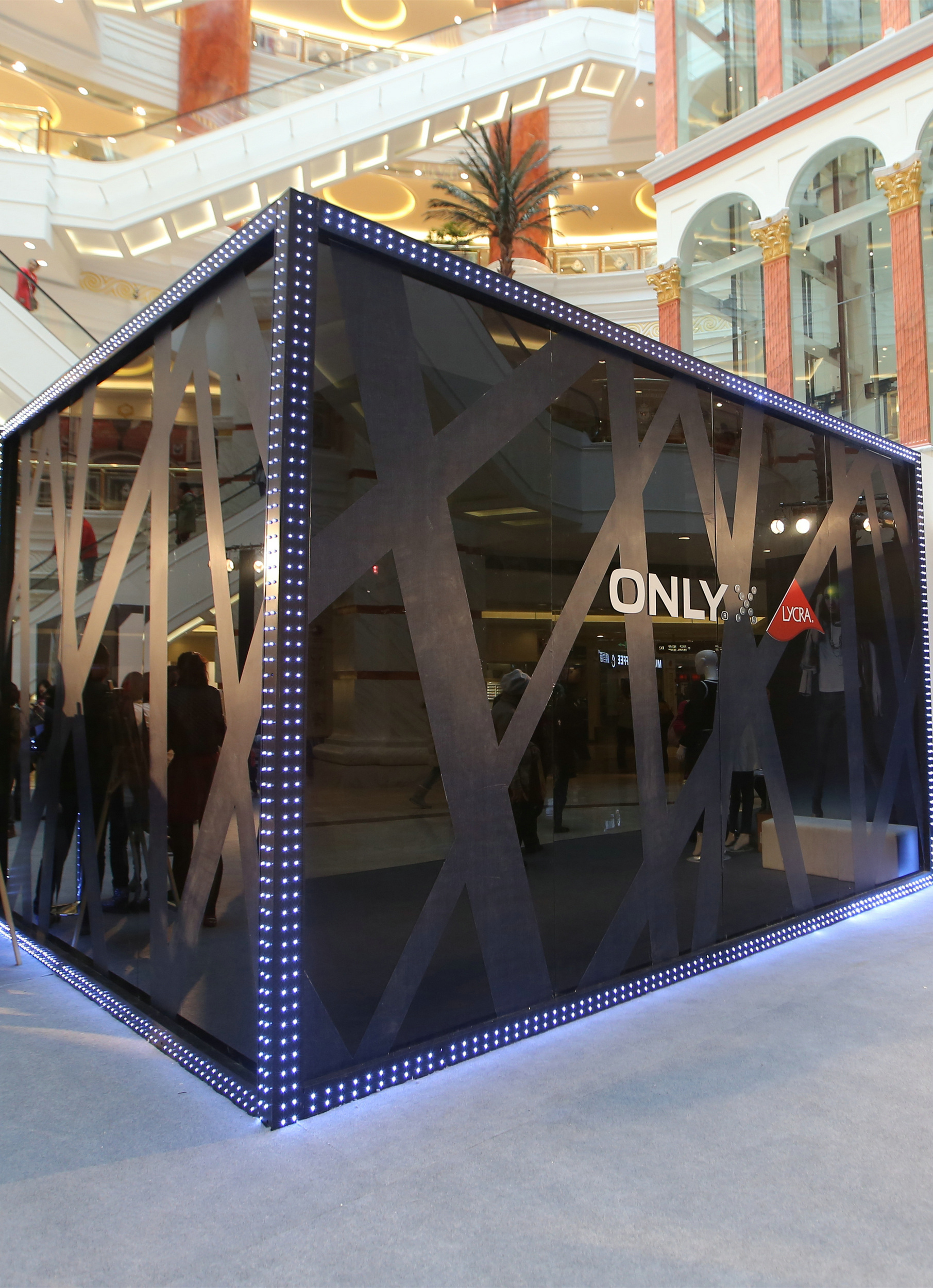 你是否能想象在“眾目睽睽”之下換上心愛的彈性牛仔褲?這需要的不僅僅是勇氣,更是一副好身材。如果你有膽子又有“料”,那由ONLY和LYCRA®(萊卡®)纖維共同呈現的“透明試衣間”絕對是為你量身定制。占地約10平米的玻璃大盒子里陳列著的是由ONLY提供的最新款特別版牛仔褲,只要你敢于出眾,進入透明試衣間親自試穿,即可獲得心儀牛仔褲一條!不過別擔心,雖說是“透明”,在這個“玻璃大盒子”里試衣的你可以看到活動現場人頭攢動,但在外面的人卻窺探不到一點盒內的蛛絲馬跡。在透明試衣間中,百位通過微博、微信報名參與挑戰的時尚女性,打破常規思維禁錮在“透明空間”盡情試穿各色牛仔褲,讓身體享受超Fit但又毫無束縛的LYCRA®(萊卡®)牛仔體驗。此外,所有參與挑戰透明試衣間的女性均可免費獲得牛仔褲一條,現場更有專屬的造型師與化妝師為其打造不同的時尚牛仔造型,并邀其成為拍片主角,由專業攝影師記錄下這一時尚的萊卡® x ONLY牛仔體驗派對時刻。