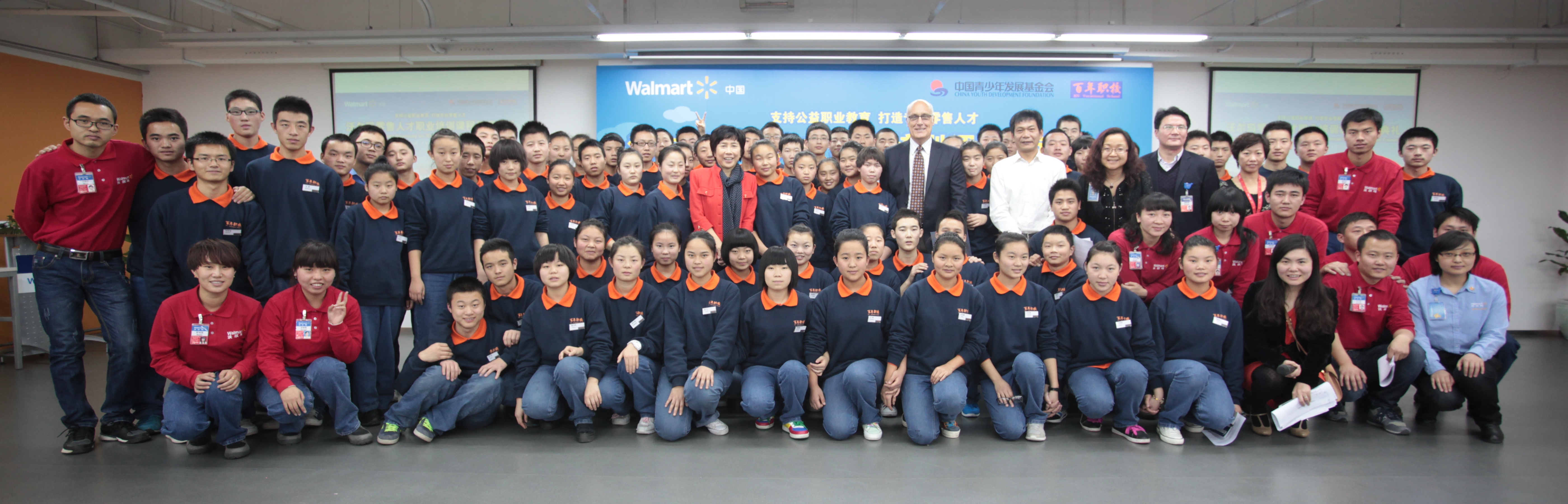 中國(guó)青少年發(fā)展基金會(huì)秘書(shū)長(zhǎng)涂猛先生,百年職校發(fā)起人和理事長(zhǎng)姚莉女士,沃爾瑪中國(guó)公司事務(wù)高級(jí)副總裁博睿(Raymond Bracy),及來(lái)自北京百年職校的全體師生參加了當(dāng)天的“沃爾瑪零售人才職業(yè)培訓(xùn)課程”開(kāi)課典禮。此外,來(lái)自沃爾瑪北京地區(qū)的營(yíng)運(yùn)管理人員及員工代表也參與了當(dāng)天的活動(dòng)。